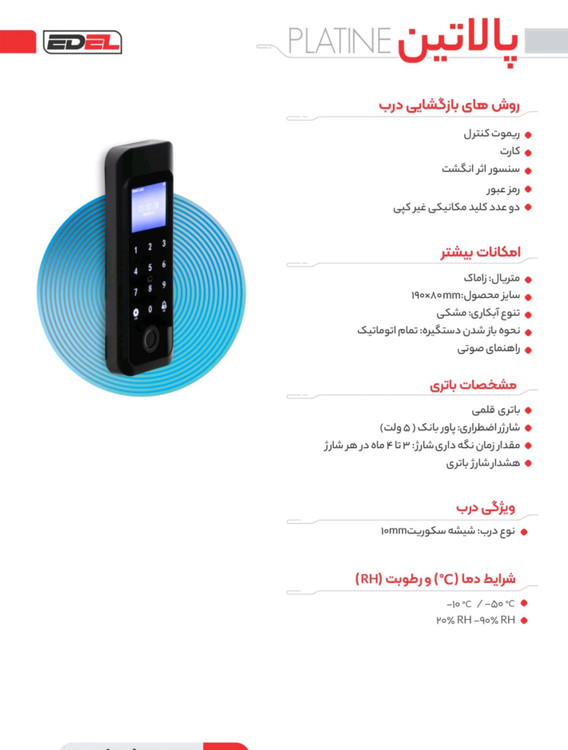 روش های بازگشایی درب : کارت و تگ؛ اثر انگشت؛ رمز عبور؛ کلید مکانیکی غیر قابل کپی؛ ریموت کنترل